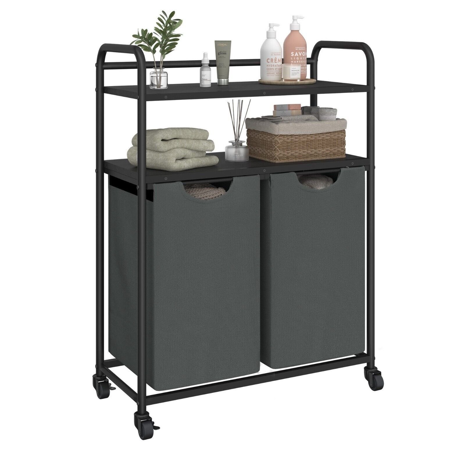 Wäschekorb mit 2 Ablagen: Mit zwei Ablagen, die mehr Stauraum für Toilettenartikel oder Reinigungsmittel bieten, ist dieser Wäschekorb eine praktische Ergänzung für jedes Zuhause. Darüber hinaus sorgt das Kreuzstrebendesign auf der Rückseite dafür, dass Ihre Gegenstände nicht herunterrutschen