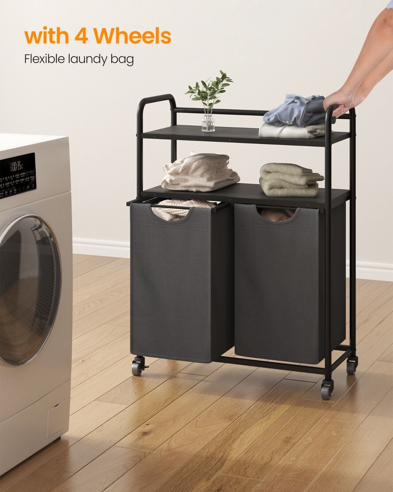Robust, stabil & langlebig: Dieser Wäschesortierer verfügt über einen stabilen 0,8-Zoll-Stahlrohrrahmen und eine MDF-Platte und trägt auf jedem oberen Regal bis zu 20 kg. Darüber hinaus besteht jeder Liner aus wasserabweisendem Oxford-Gewebe, während die vier verstellbaren Füße für zusätzliche Stabilität sorgen